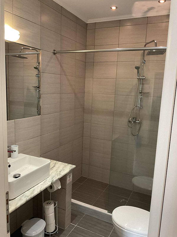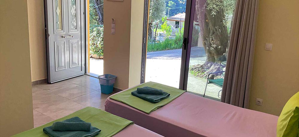 One bedroom studio (room Size 35 m²) with 2 twin beds, shower, bathroom, balcony, only 100 meters far away from Pelekas Beach.